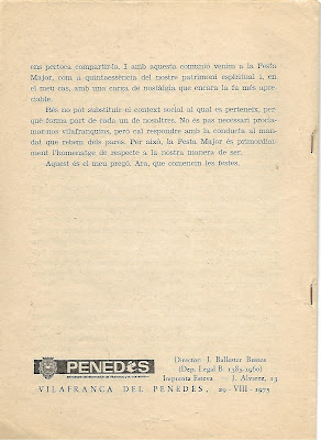 impremta Esteva de Vilafranca. Posteriorment aplegat a VV.AA. 1975, una festa major de Museu Ed. Museu de Vilafranca.
